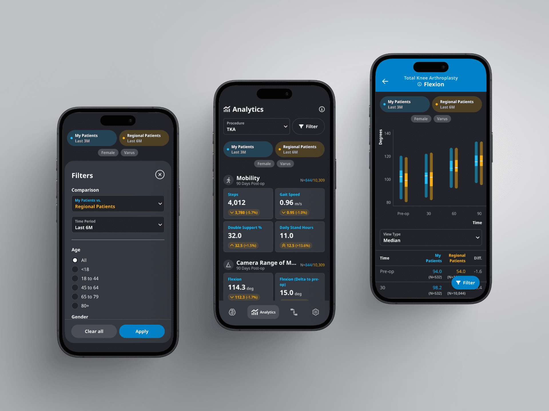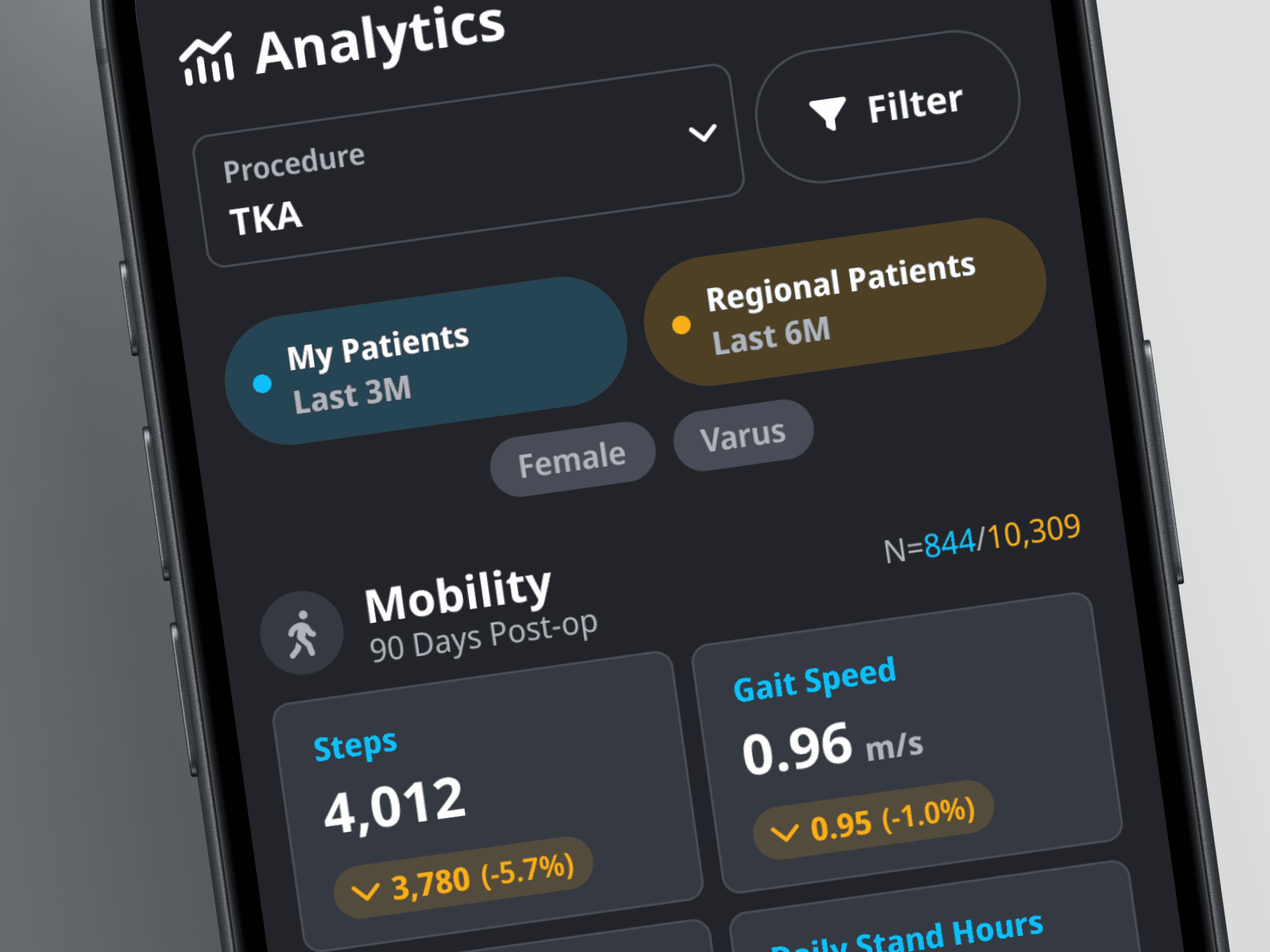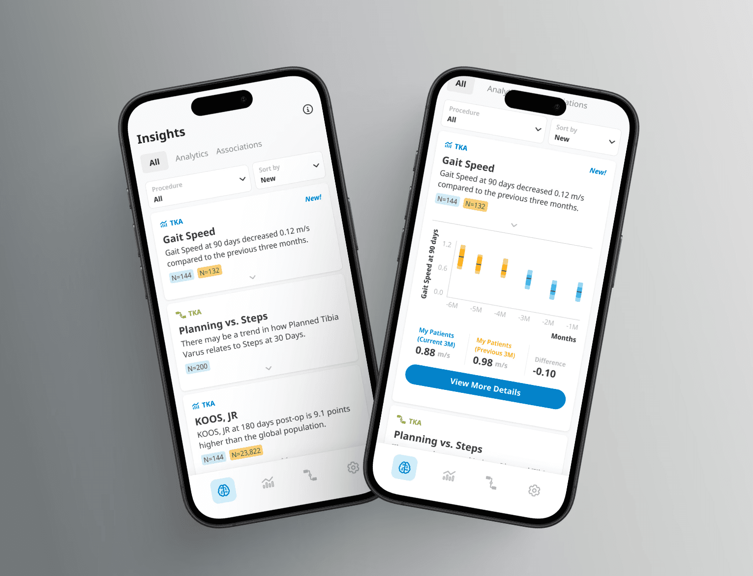 Using Zimmer Biomet's extensive dataset, the app provides context to surgeon metrics by allowing them to compare to their past selves, patients in their region, and global patients.